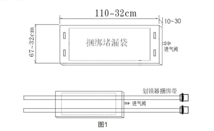 應用在金屬、塑料、玻璃鋼材質(zhì)的各類管道、罐車、容器罐的砂眼、焊縫等腐蝕穿孔跑、冒、滴、漏類泄漏,或人為損壞的泄漏,包扎鎖緊后充氣堵漏應急之用。(見圖1)